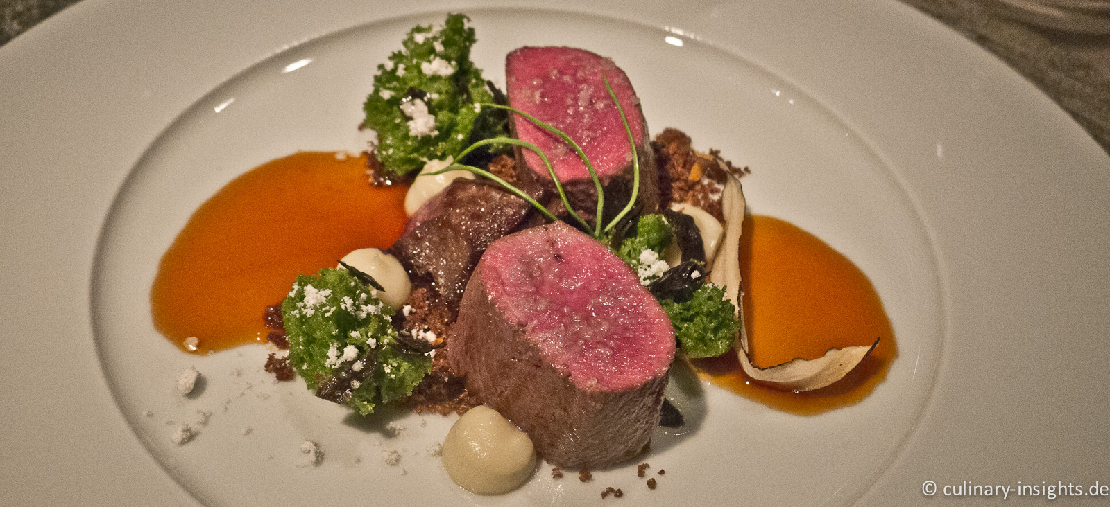 Here, Mezger not also used a wonderful venison back but also the liver and thus created a much more intense sensation. Moreover, the liver was not dominant at all and intensified the game flavor in a nice crescendo. Combined with some parsley and earthy black salsify this was a perfect main.